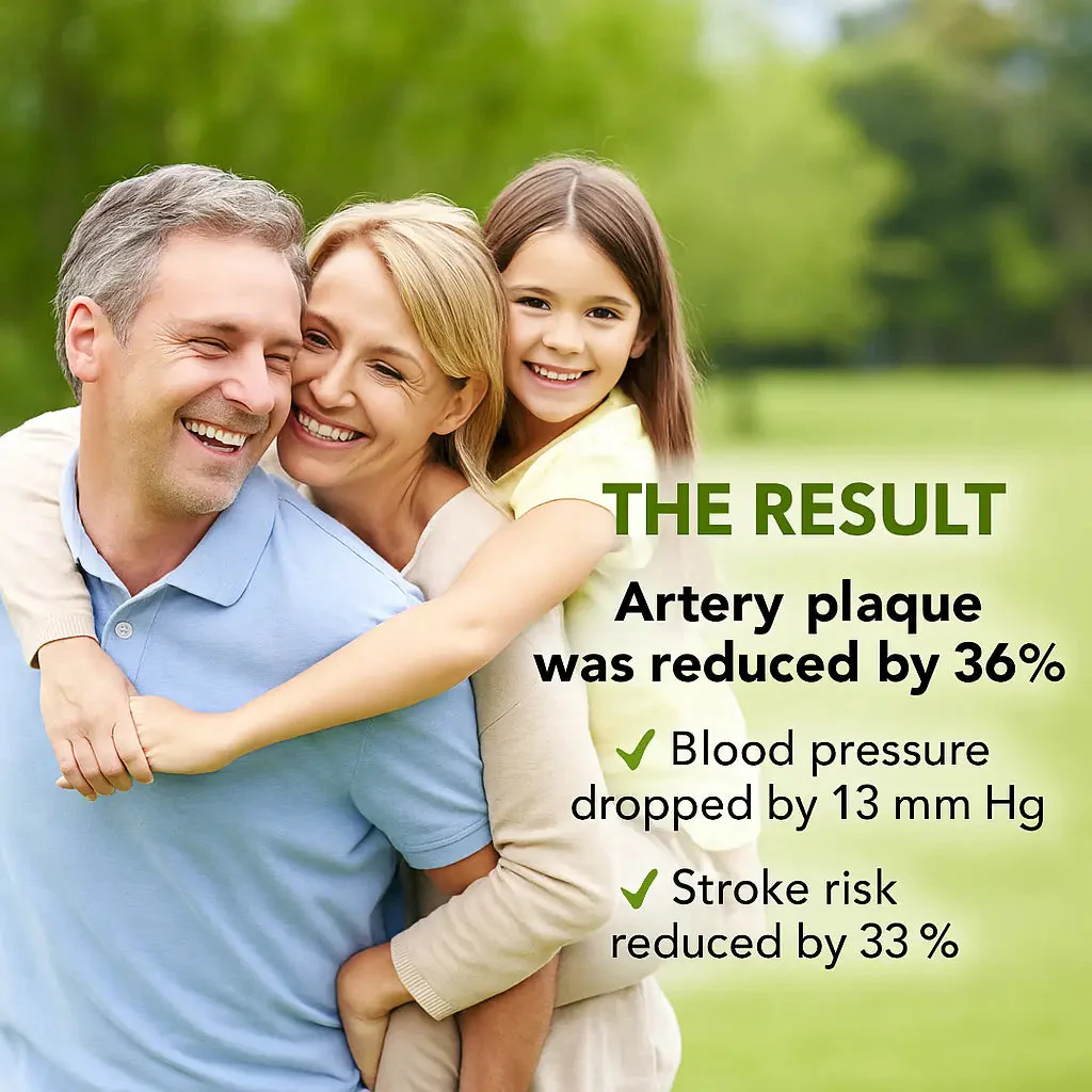 Trusted by over 50,000 health-conscious adultsOur simple 2-step Heart Health Ritual is based on decades of clinical research. It's designed to help unclog your arteries, improve circulation, and reduce your risk of heart attack and stroke - all naturally and without drugs.