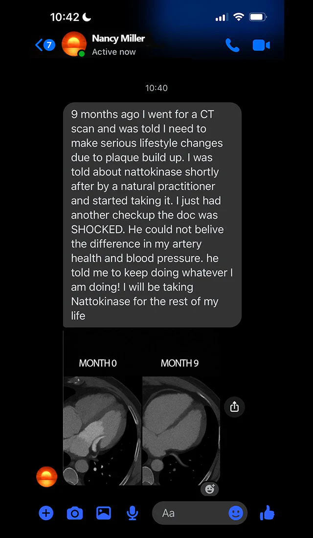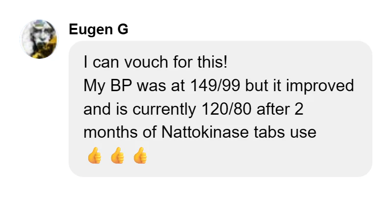 After years of worrying about my heart health, I started taking nattokinase daily. Within weeks, I noticed real changes - better energy, better numbers, and peace of mind. It's the only supplement that actually made a difference. - Eric T., 58